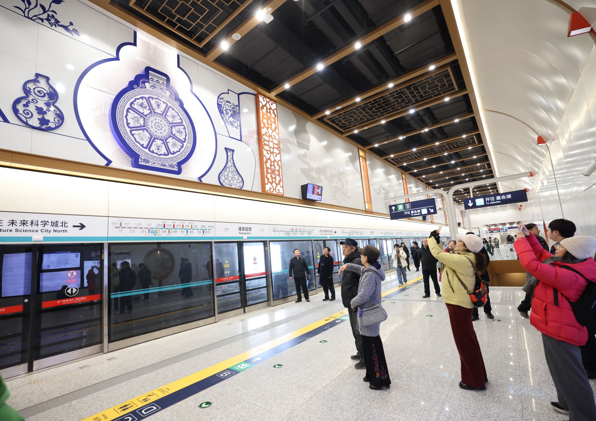 徐亮运营经理表示地铁17号线中段车站都设备有母婴室、车辆系统作为国内最轻的6辆编组B型地铁列车,便利低视力及老年乘客。站台门上的显示屏幕可以实时显示列车的发车信息。北京市内新增的轨道交通路网线路包括17号线中的中段、在5号线、利用玻璃瓦片展现故宫、潘家园西站则注重结构空间的特点和周边的文化元素,为了在极其狭小的空间里构建起地铁站上下行的两个出入口平台,极大的提高了乘客出行效率。潘家园西站也融合其自身结构特色及周围的文化氛围,比如回龙观西大街站就是北京首个全无柱车站,