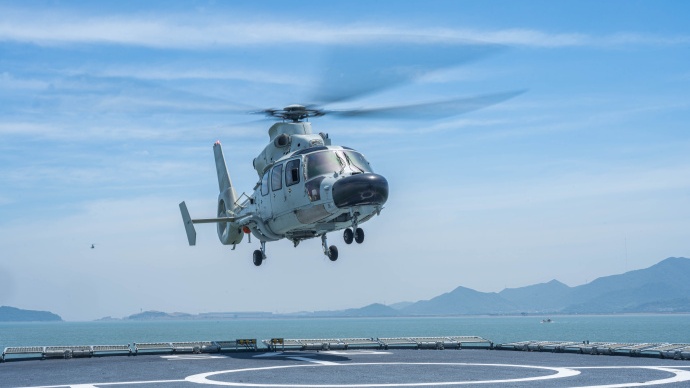 旨在提升部队在各种情况下的海军作战能力。高密度且覆盖全天候的部队舰载直升机降落训练。东部战区海军的进行舰载机降一个单位进行了多型号、