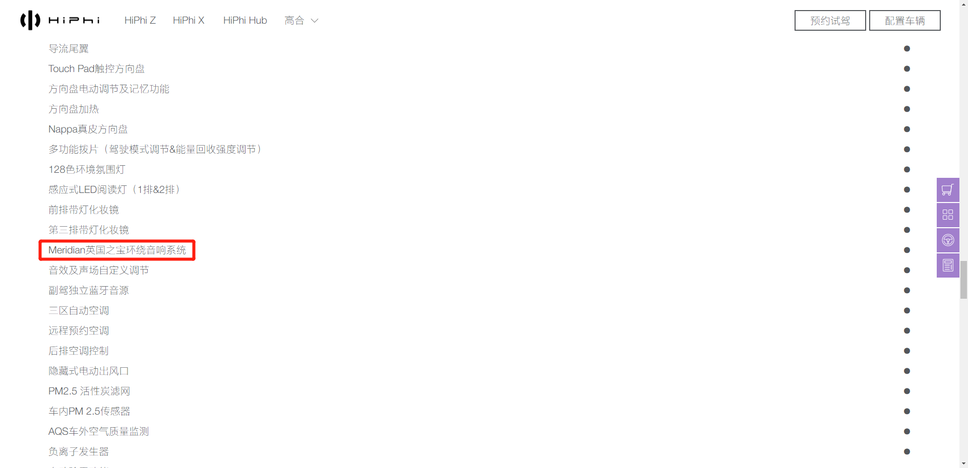 高合Hiphi X官方宣称其车辆使用的是英国之宝(Meridian)品牌的音响,